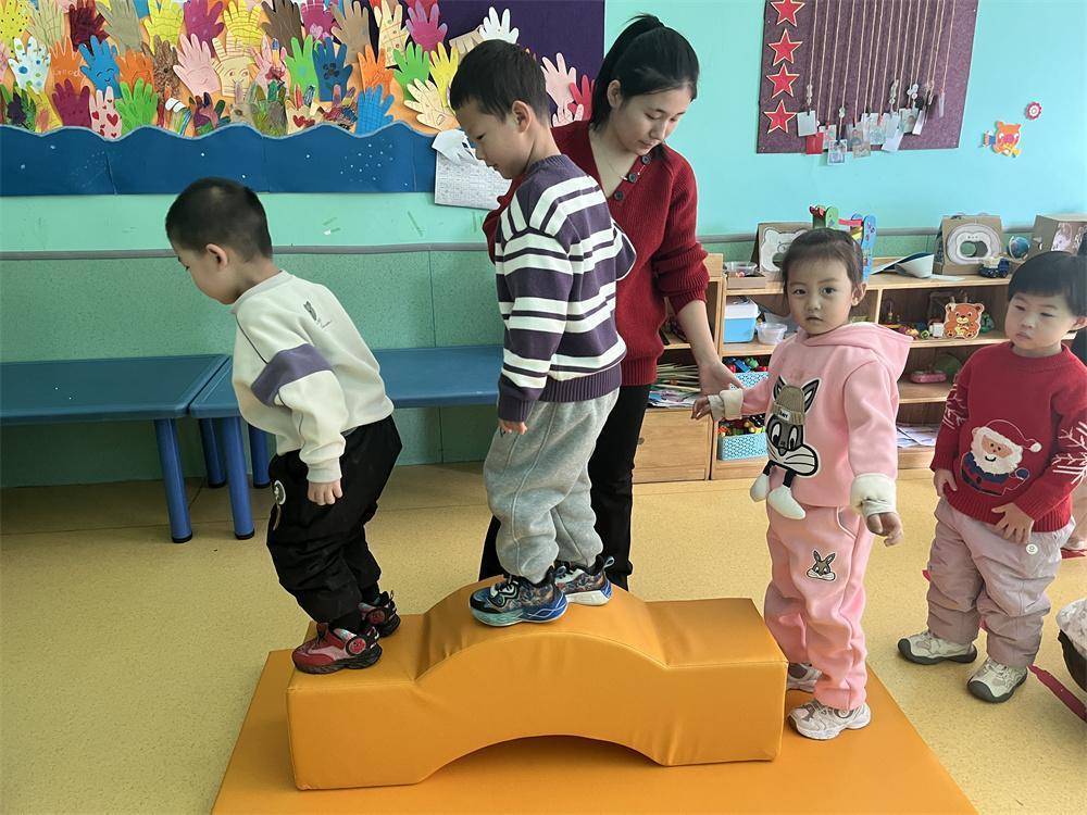 “这款独木桥可拆分组合,能搭建出攀爬、跳跃、平衡等多种训练场景,同时满足前庭觉强化、肌肉控制等多重需求,让孩子在自主探索中提升感知协调能力。”蓝祥托育服务中心负责人李杭泽高兴地介绍。在棉花糖托育服务中心,3岁的乐乐正专注地在平衡步道上行走,小脸上满是自信与喜悦:“我每天都想玩平衡木,太有意思了!”